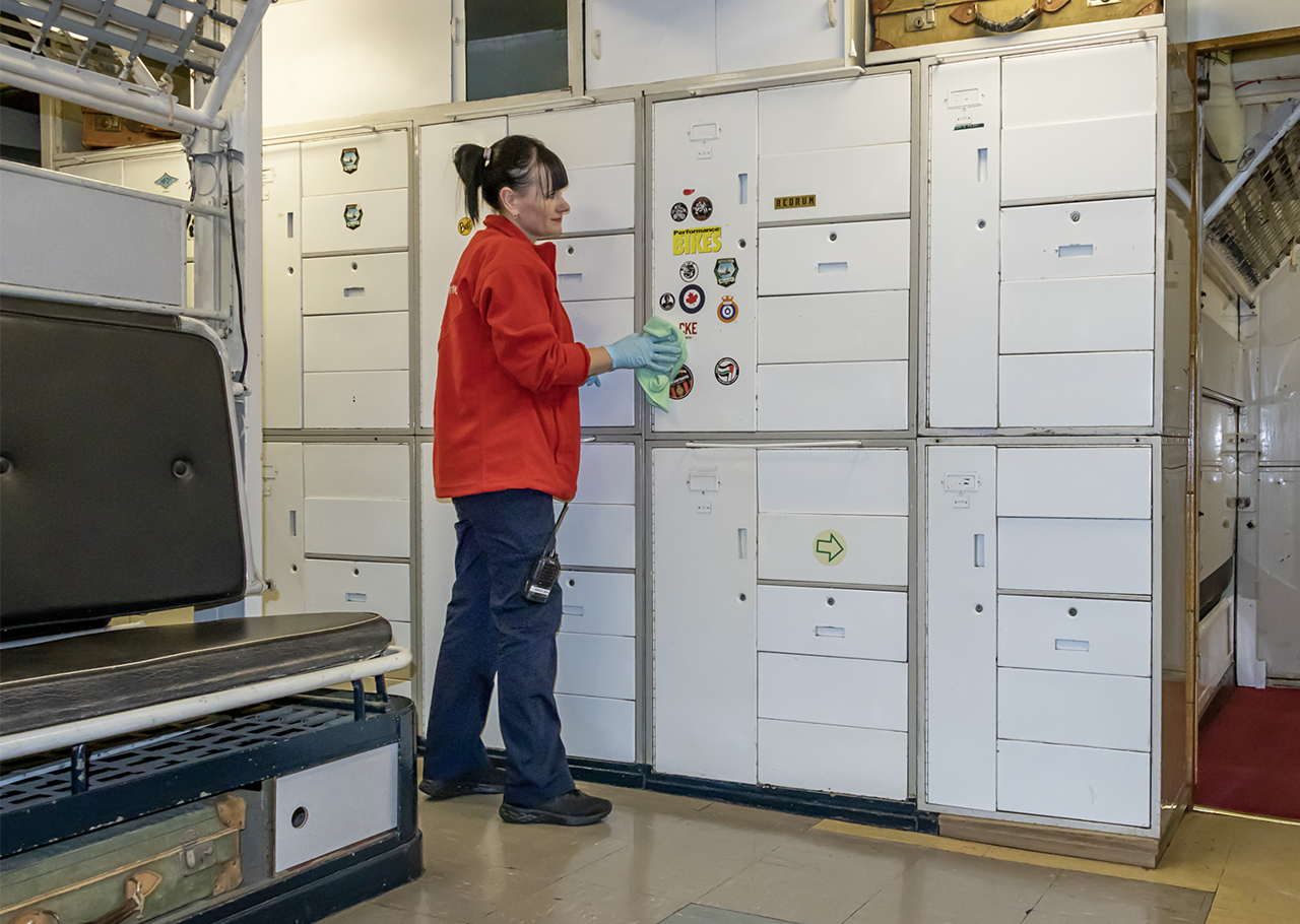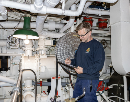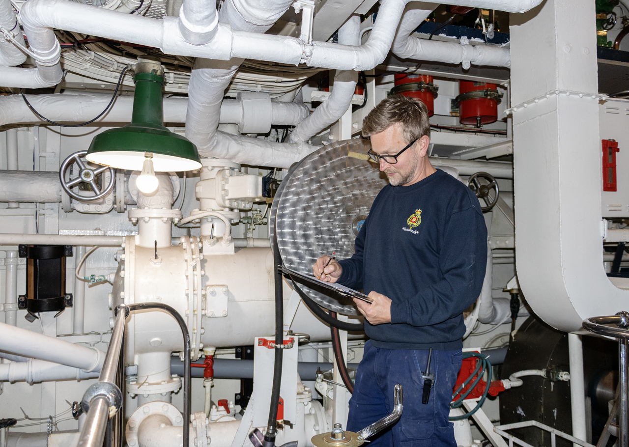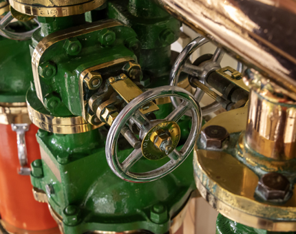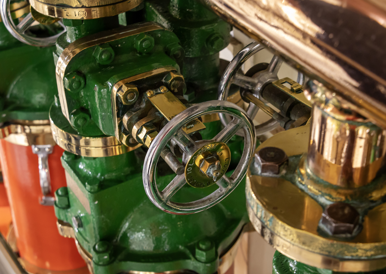 Inside the pristine Engine Room, which originally had a mat outside, not to wipe your feet when leaving, but when entering!
